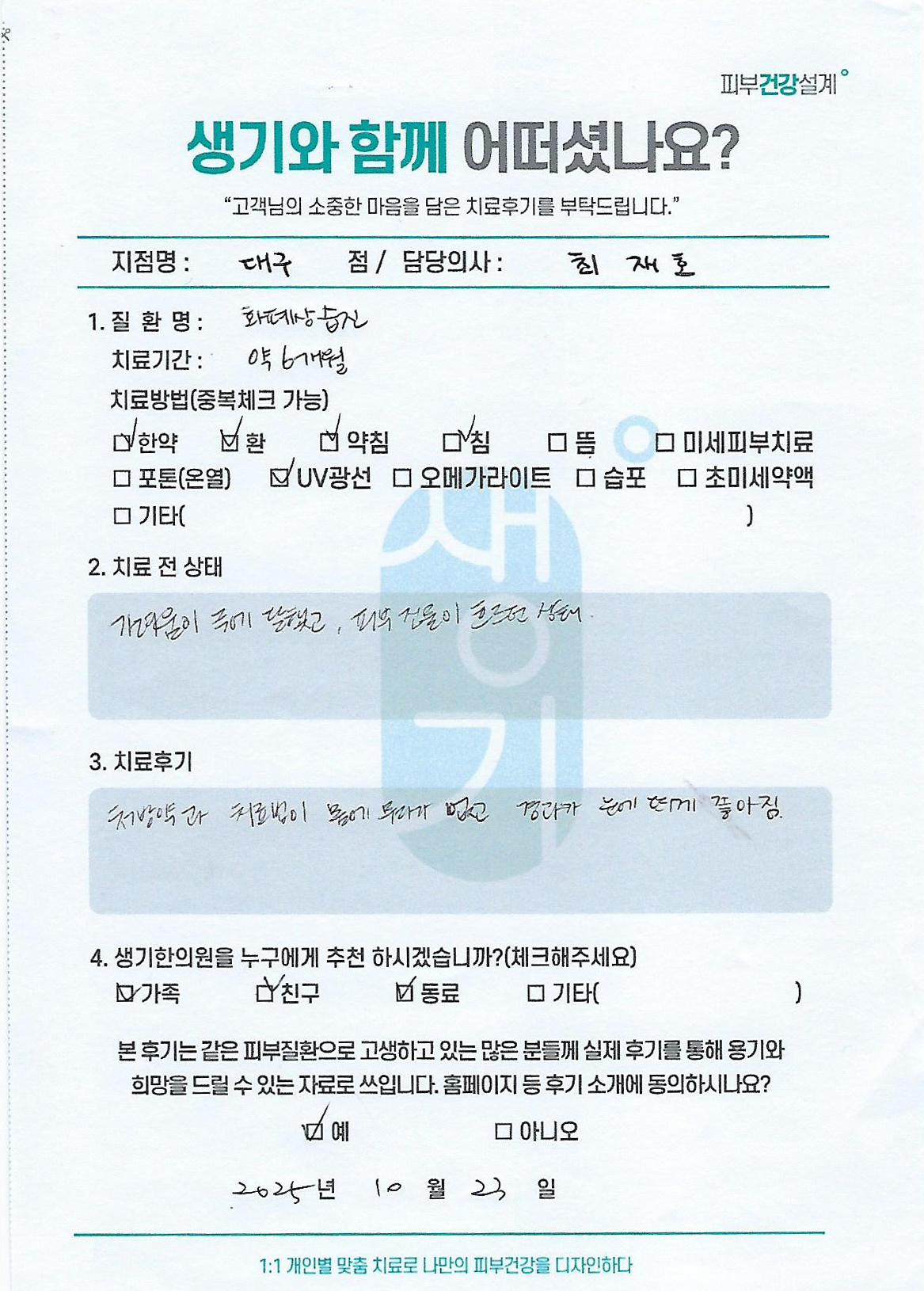 생기한의원과 함께하신 생생한 자필 및 영상 후기를 소개합니다.