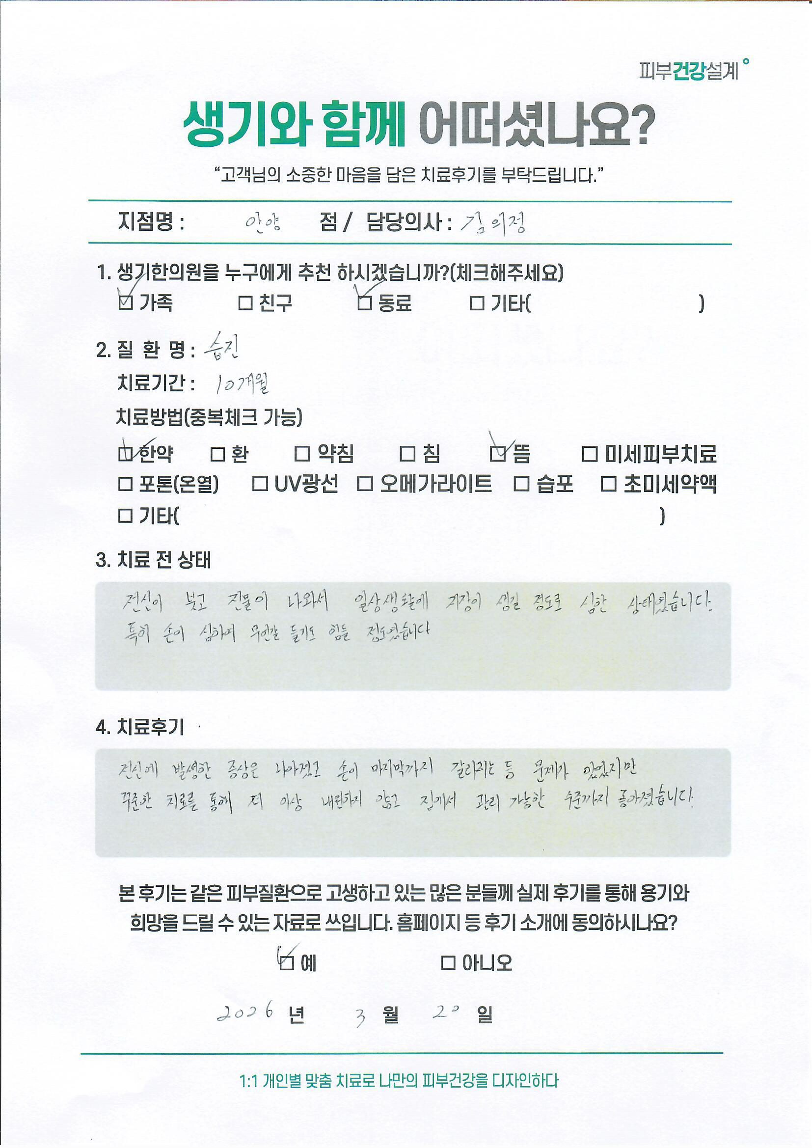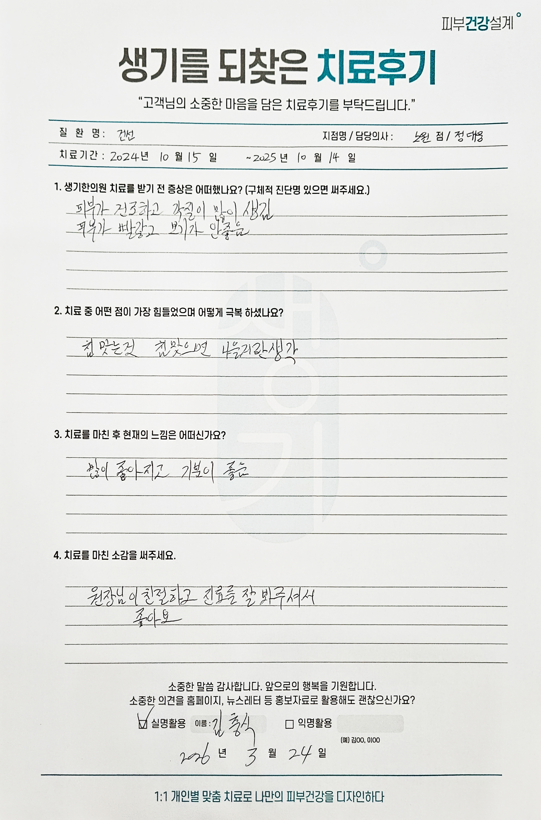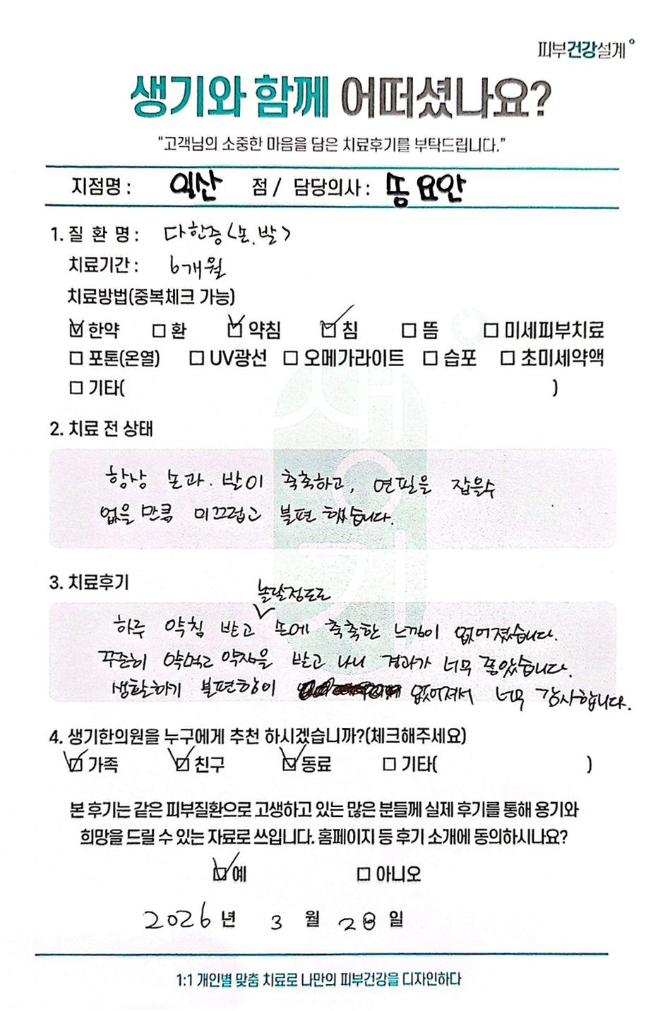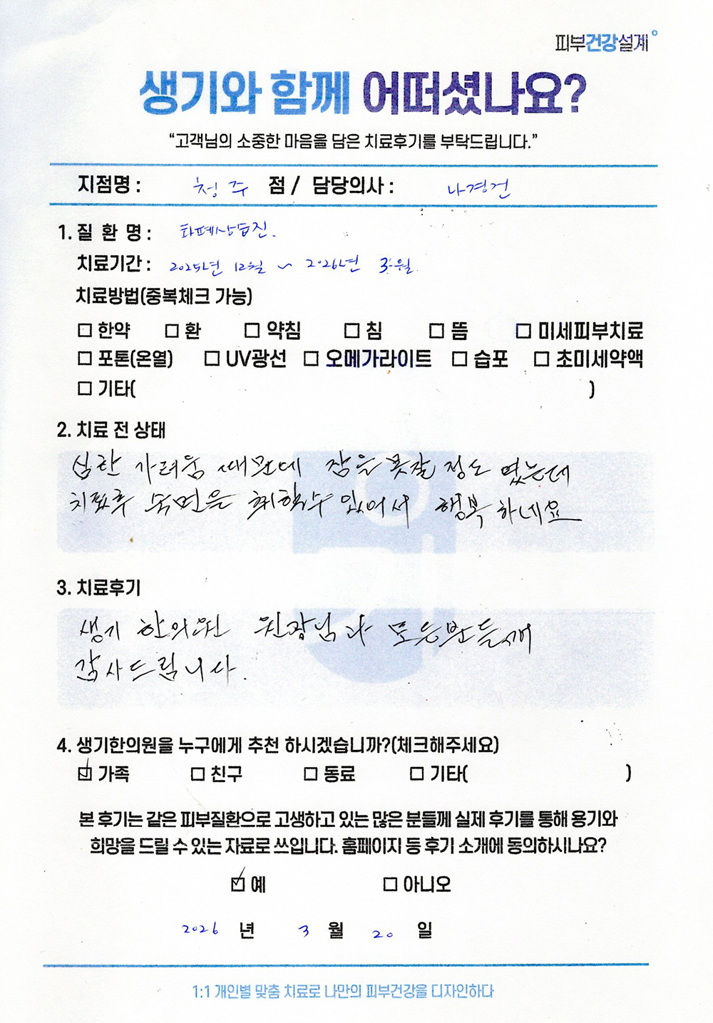 생기한의원과 함께하신 생생한 자필 및 영상 후기를 소개합니다.