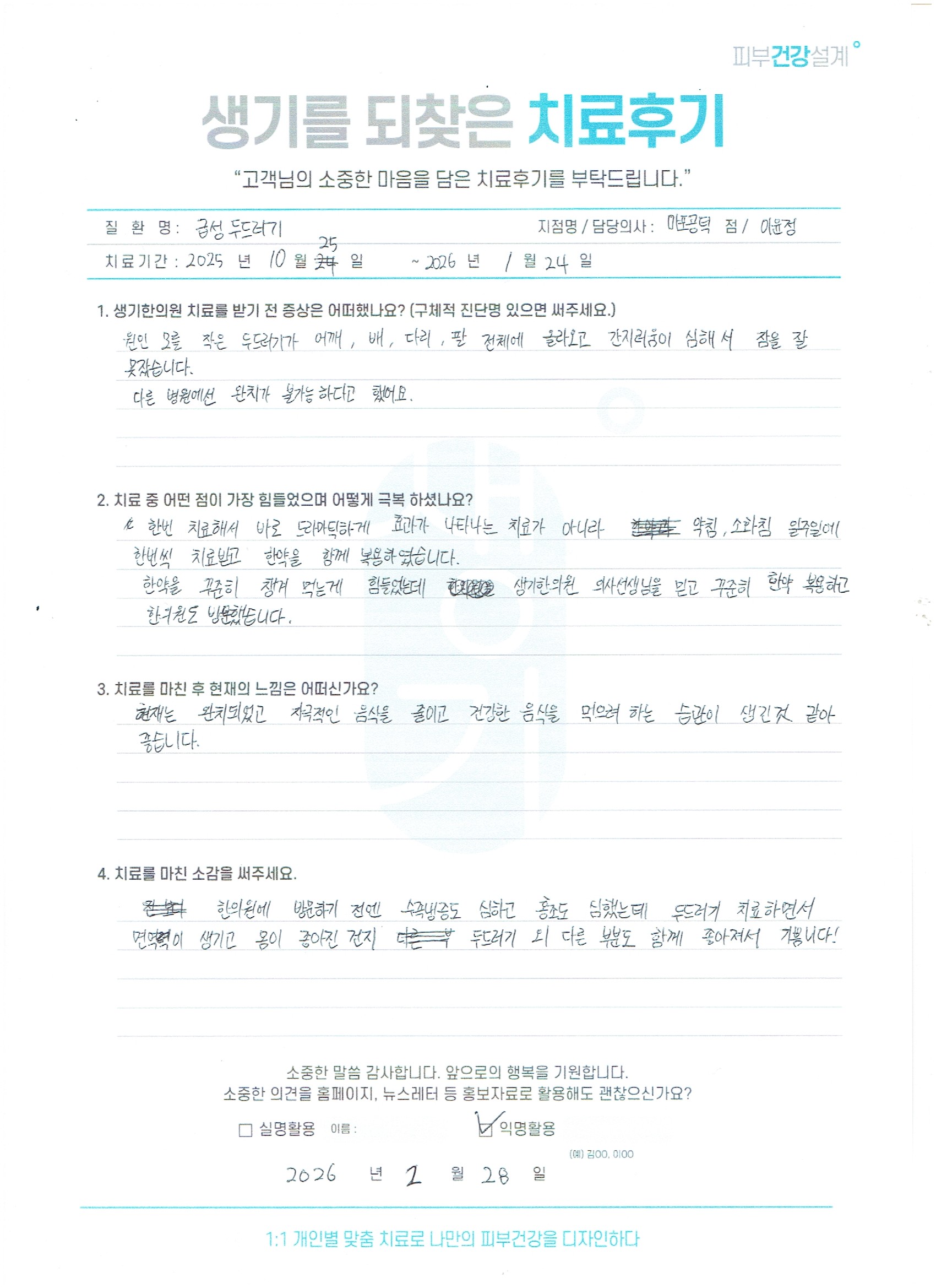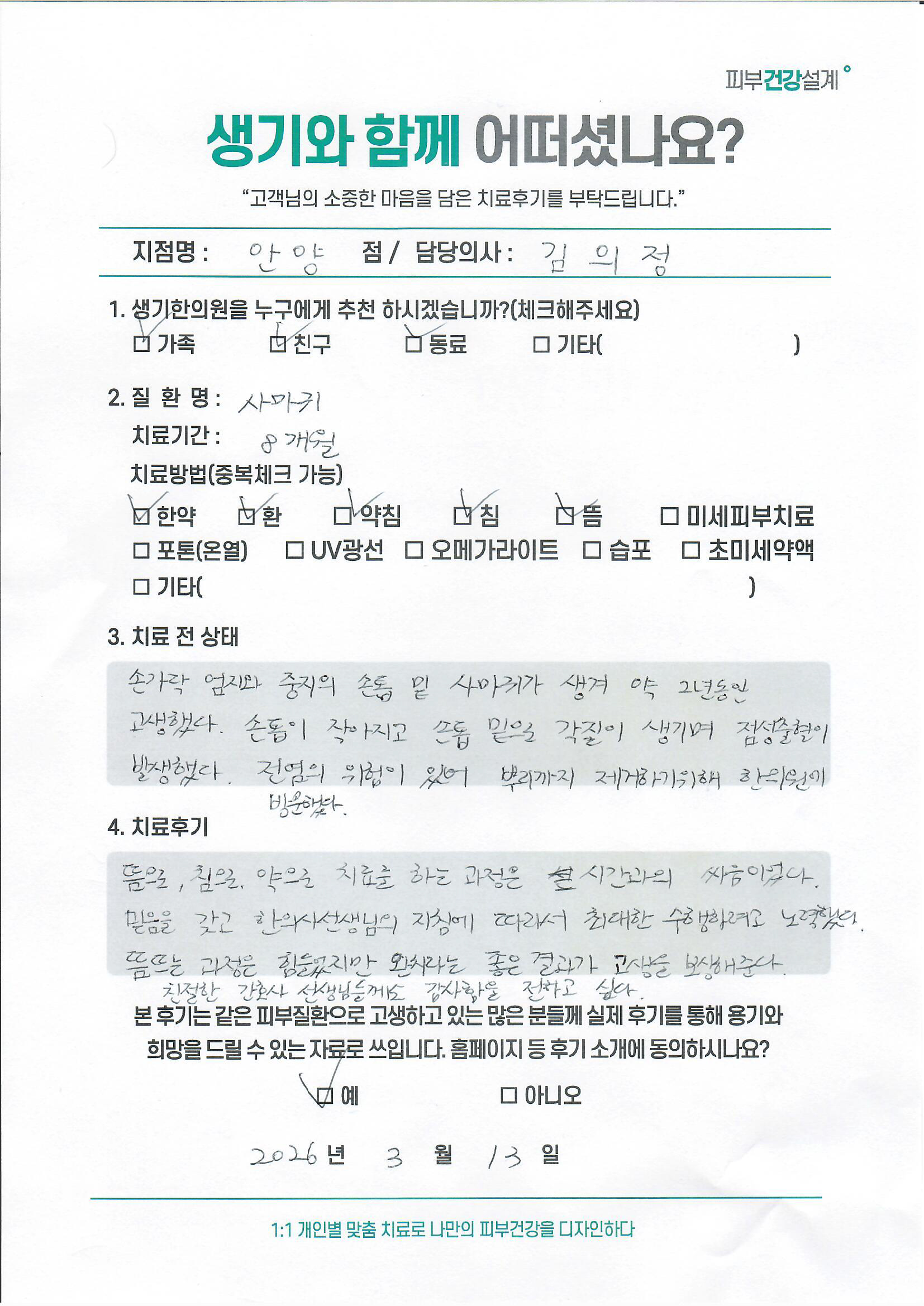 생기한의원과 함께하신 생생한 자필 및 영상 후기를 소개합니다.