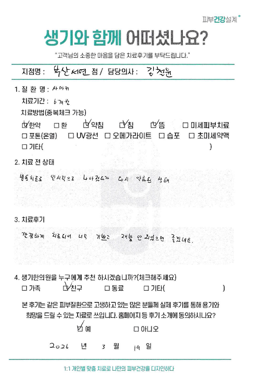 생기한의원과 함께하신 생생한 자필 및 영상 후기를 소개합니다.